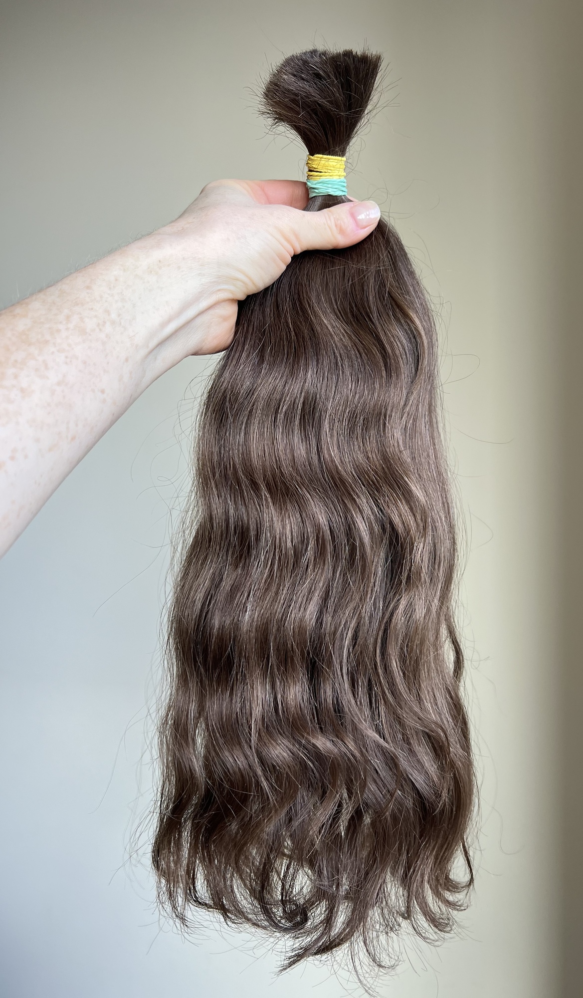 Волосы с девушки, тонкие, мягкие, слегка воздушные, волнистые