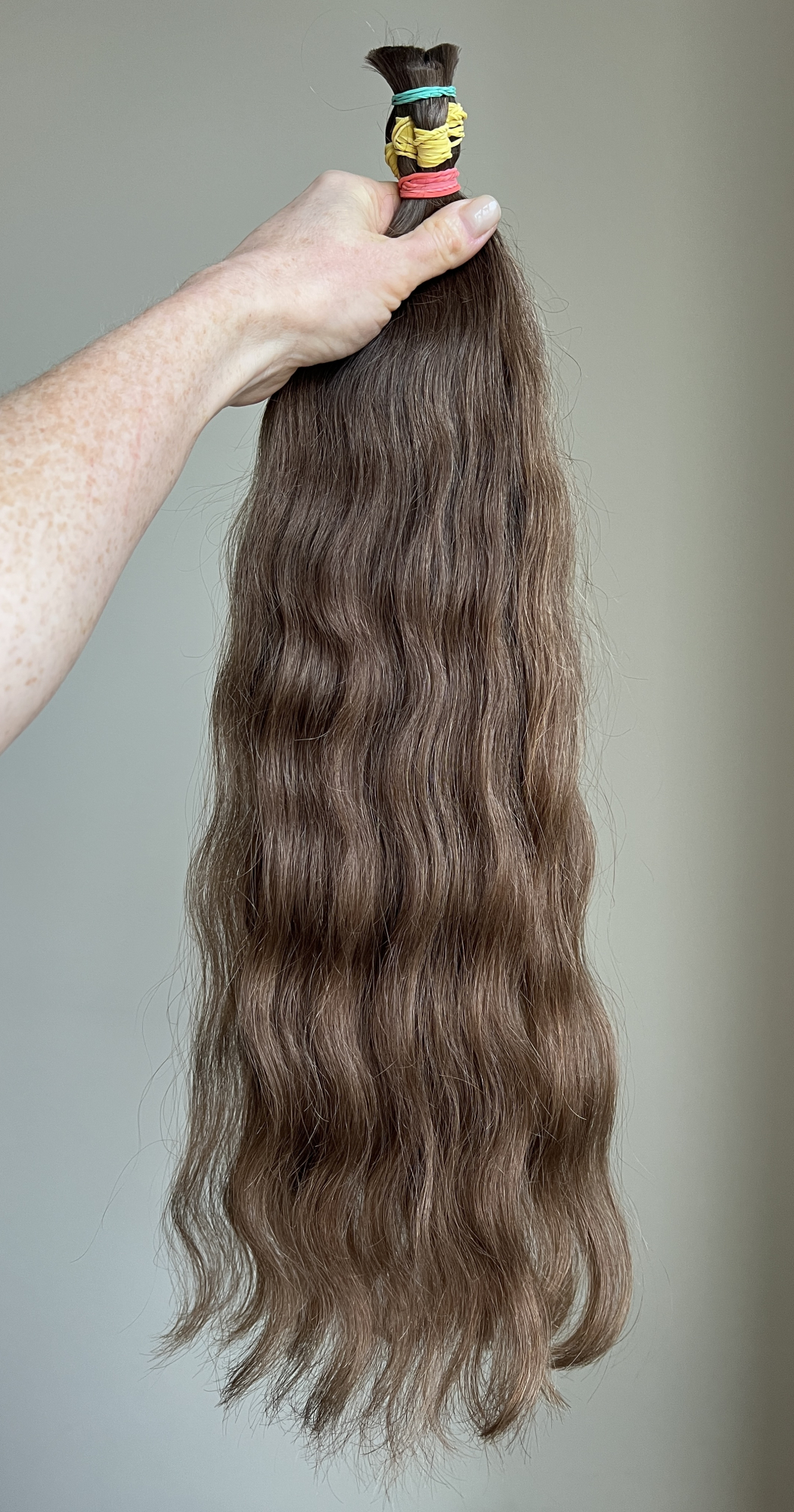 Волосы с девушки, тонкие, мягкие, слегка воздушные, волнистые